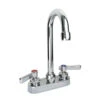 This wall mounted, two handle laundry faucet is from Central Brass. It has 3-1/2 inch centers with a 6 inch swivel spout. Faucet also features quarter-turn stems, as well as extended hole mount legs. Faucet is ADA compliant. Has a rough brass finish. Central Brass model number 0469.