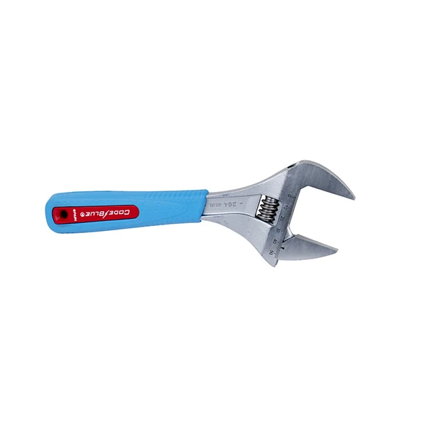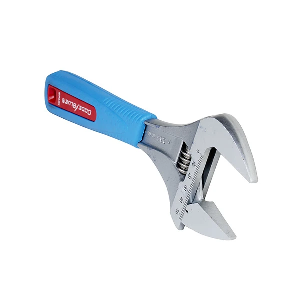 This 10-inch WIDEAZZ® Adjustable Wrench is from Channellock. Features a super-wide 2-inch jaw capacity. It has longer jaws for better grip and greater access in tight spaces. Precise 4-thread knurl improved adjustment accuracy. Optimal head width and non-protruding jaws allow accessibility for hard to reach applications. Has Code Blue® comfort grips. Made of a rugged chrome vanadium steel construction with a chrome finish for rust protection. Channellock part number 10WCB.