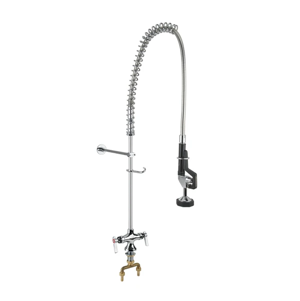 Single hole, deck mounted, with antimicrobial spray valve, hose, and handles.