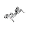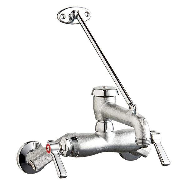 This service sink faucet is manufactured by Chicago Faucets. The faucet has a rough chrome finish. The body of the faucet measures 3-3/8″. It has adjustable arms from 3″ to 8-3/8″. The lever handles measure 2-3/8″ and are vandal proof. Features a 2-1/2″ offset supply arm with an integral shut-off stop. Has a vacuum breaker spout with 5-3/4″ center to center. This faucet has a pail hook with wall support. Chicago Faucet model 445-VBRRCF.