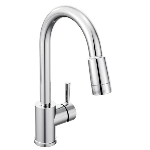 This single handle kitchen faucet with pulldown spout and flex supplies is from CFG. It has a flow rate of 1.5 GPM. Can be installed in either single or 3-hole applications. Has quick install 24 inch flexible supply lines with 3/8 inch connections. The pull down spout has stream and spray functionality. Faucet has a chrome plated finish. CFG model number 46201.