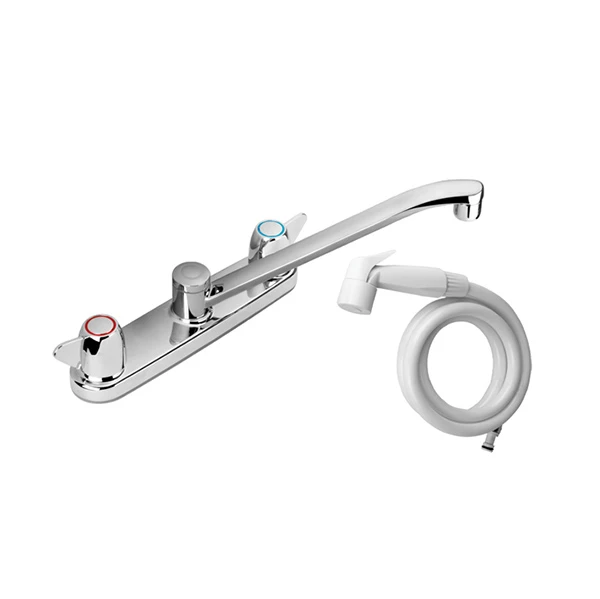 Chrome Plated Brass Kitchen Faucet. 8″ Deck Mount with Spray.