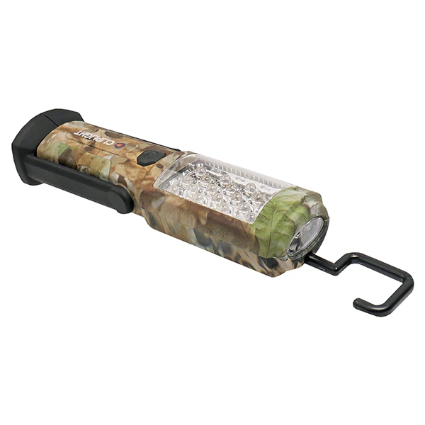 This Magnetic Pivoting Flashlight is great for illuminating those hard to see areas. The flashlight is equipped with a 360 degree folding swivel hook, which allows full control of where the light is being shined. With a magnetic base it can be attached to any metal surface and can pivot from that position to illuminate the area needed. This model comes with 18 front LED’s and 3 top LED’s. With the first click the front LED’s turn on, illuminating at 120 lumens. With a second click the top LED’s turn on and the front LED’s turn off allowing a more precise shine. A third click turns off the flashlight all together. Comes with three AA batteries.