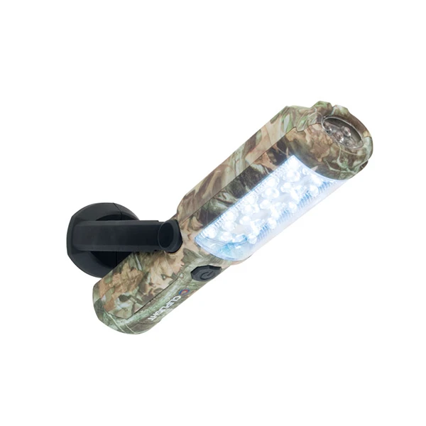 This Magnetic Pivoting Flashlight is great for illuminating those hard to see areas. The flashlight is equipped with a 360 degree folding swivel hook, which allows full control of where the light is being shined. With a magnetic base it can be attached to any metal surface and can pivot from that position to illuminate the area needed. This model comes with 28 front LED’s and 5 top LED’s. With the first click the front LED’s turn on, illuminating at 160 lumens. With a second click the top LED’s turn on and the front LED’s turn off allowing a more precise shine. A third click turns off the flashlight all together. Comes with three AA batteries.