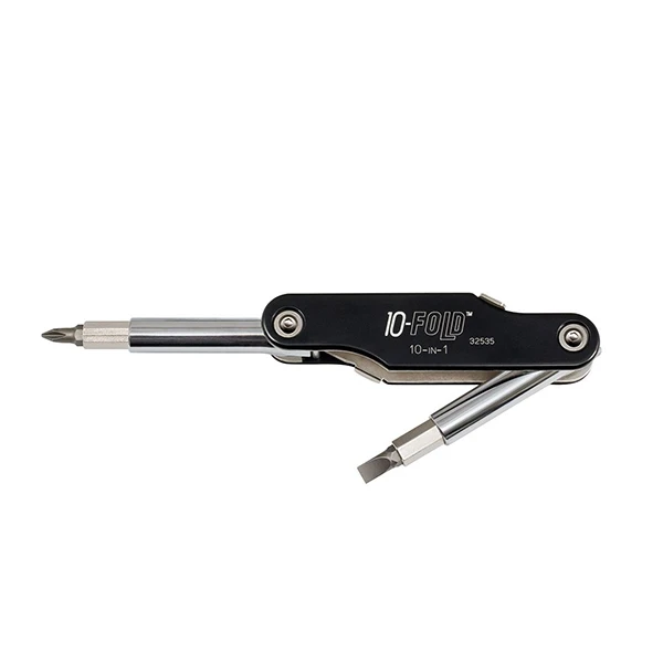 • Folding pocket-style 10-in-1 tool with interchangeable bits – 8 screwdriver sizes and 2 nut drivers
