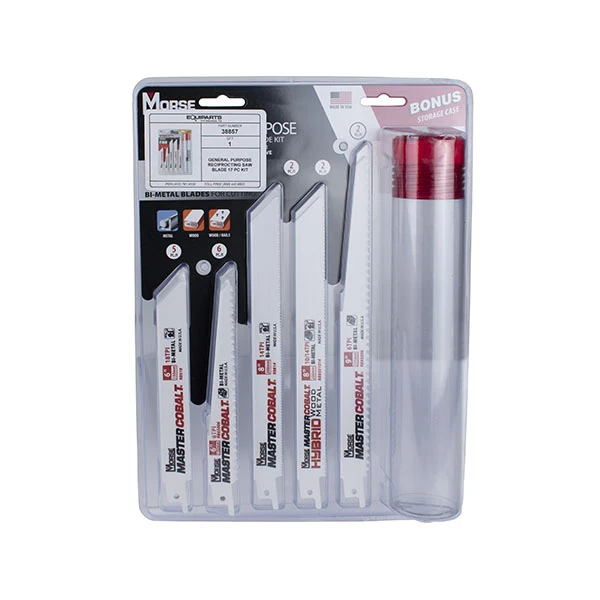 This general purpose bi-metal reciprocating saw blade kit is from M.K. Morse. It contains 17 different saw blades that are great for use on metal and wood. M.K. Morse part number 397483.