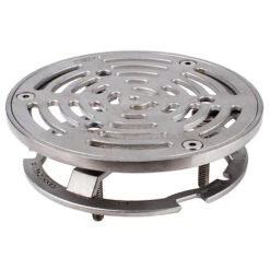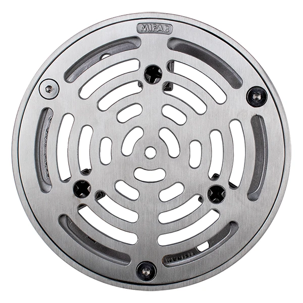 This 6″ diameter Top Set® Retro-Fit Grate and Frame is from Mifab. It adjusts to fit uneven floors. Designed to replace 6″ diameter grates from any Zurn, Smith, Josam, Wade, Watts, or Mifab floor drain. For use in showers, kitchens, restrooms, and any other floor areas. Simply remove the existing grate, place the bottom universal ring into the recessed area of the strainer, and connect it with the existing strainer screws. The new grate and frame can be adjusted vertically and side to side to meet the finished floor. Mifab model number RTS6-3.