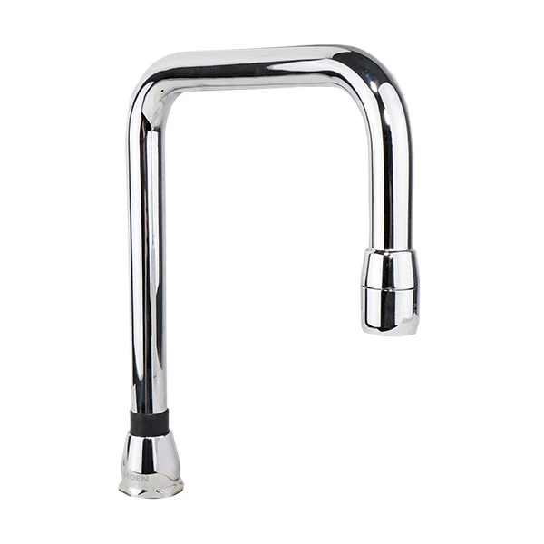 This chrome plated double bend spout is from Moen Inc. The spout has a 6″ reach. The height to the 2.2 GPM aerator is 5.75″. The overall height of the faucet measures at 9.75″ Moen model S0003.