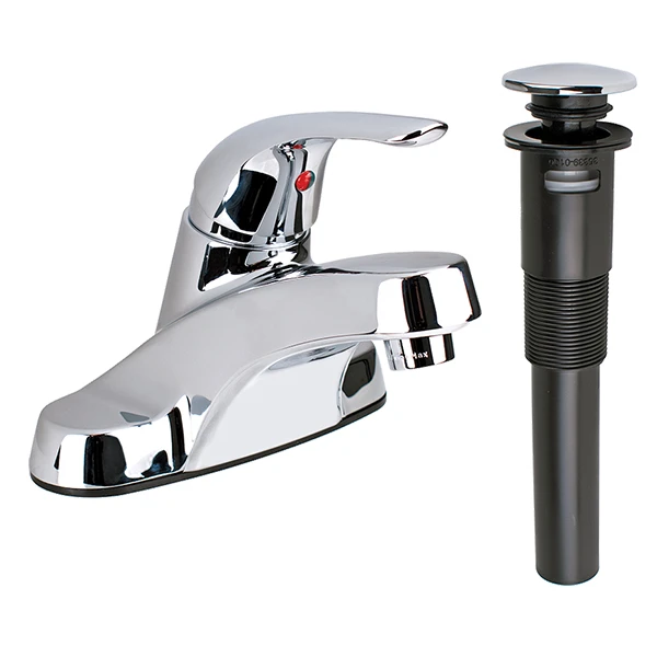 This single handle bathroom faucet is from Price Pfister. It has a polished chrome finish and flow rate of 1.2 GPM. Faucet has a 3-hole installation. Features a metal lever handle and a stainless steel ball valve. The Push and Sealβ’ Drain requires no tools to install. Price Pfister model number LG142-8000.