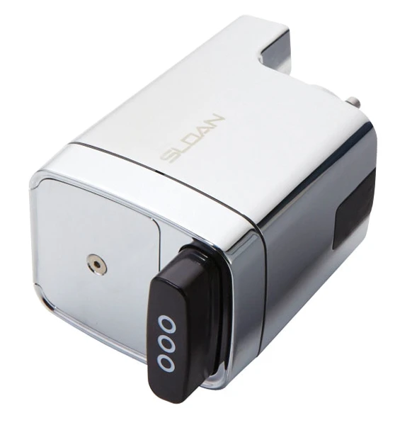 Sloan’s SFSM flushometers can also be activated manually by pushing the black TMO button.