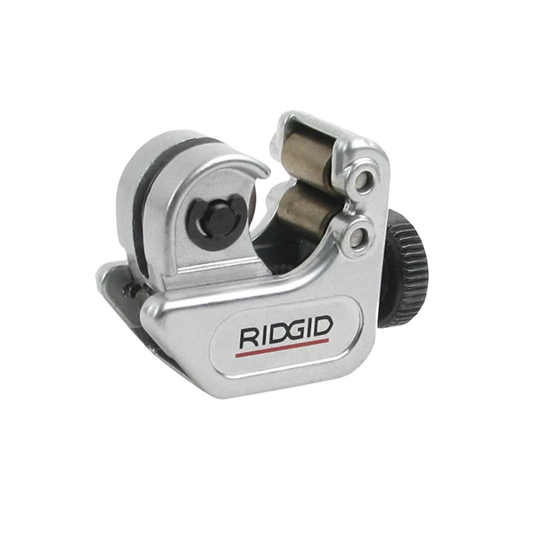 Specifically designed for use in extra close quarters on small size hard and soft copper, aluminum, brass and plastic tubing. Two rollers opposite cutter wheel allow easier rotation and faster cutting. Slide and wheel housing are strong and lightweight. Large, knurled feed screw knob gives easy control pressure for clean cuts.