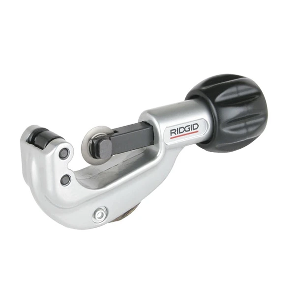 Features an enclosed feed screw to eliminate clogging and jamming, grooved rollers for close to flare cuts, and fold away reamer. Made from high strength aluminum alloy with a spare cutter wheel in the handle. Cuts copper, brass, and aluminum tubing, and thin wall conduit.