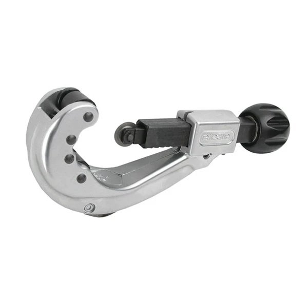 Features an enclosed feed screw to eliminate clogging and jamming, grooved rollers for close to flare cuts, and fold away reamer. Made from high strength aluminum alloy with a spare cutter wheel in the handle. Cuts copper, brass, and aluminum tubing, and thin wall conduit.