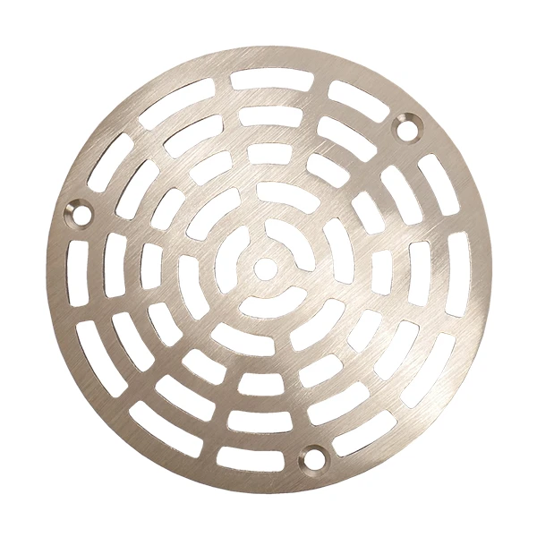 This 5-1/8 inch diameter drain grate is from Sioux Chief. It has a nickel bronze finish and three mounting holes. Sioux Chief part number 842-SN3.