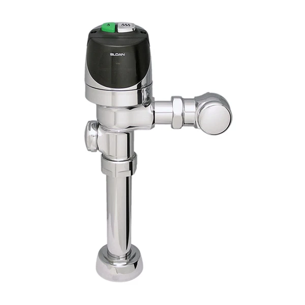 The Sloan ECOS® series flushometers are water efficient, hygienic, and reliable units ideal in high traffic commercial settings. The ECOS 111 series are exposed, sensor operated dual flush flushometers designed to fit wall hung or floor mounted top spud toilets. This unit has two flush settings that function based on sensor input information to either complete a reduced or full flush. The reduced flush occurs when the flushometer senses a user for less than one minute, and a full flush ensues when the unit senses a user for over a minute. This Smart Sense Technology helps to reduce water volume by up to 30%. The unit also has True Mechanical Override (TMO) that allows the user to use the push buttons located on top of the unit to override the sensor input. This unit also has service options that allow you to pause the sensor activation for a duration of ten minutes while servicing or cleaning the unit. This 8111-1.6/1.1 flushometer is battery operated. It comes with 4 AA Alkaline Duracell batteries, that will have a battery life of 3 years at 4,000 flushes per month. The unit also has indicator lights that will indicate low battery life, and range adjustment. This unit operates at 15-100 PSI. The sensor type for this unit is active infrared. The valve body is constructed of semi-red brass and finished in polished chrome.