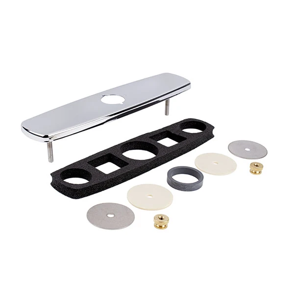8″ Centerset Trim Plate Kit for faucet only. Includes 2 nuts, 2 washer gaskets, 2 fender washers, base gasket, back-up spacer and single hole trim plate assembly.