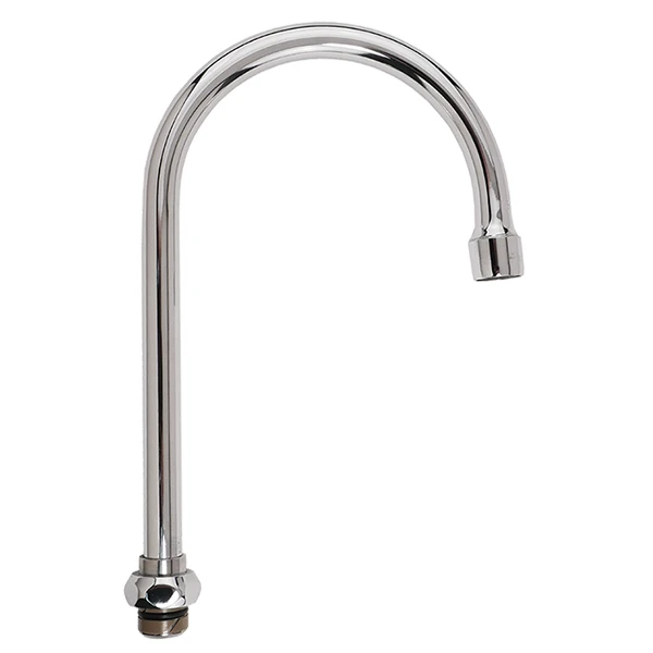 This swivel gooseneck spout is from T&S. It measures 8-3/4″ spread x 11-3/4″ tall. The nozzle has male threads with a stream regulator. T&S part number 135X.