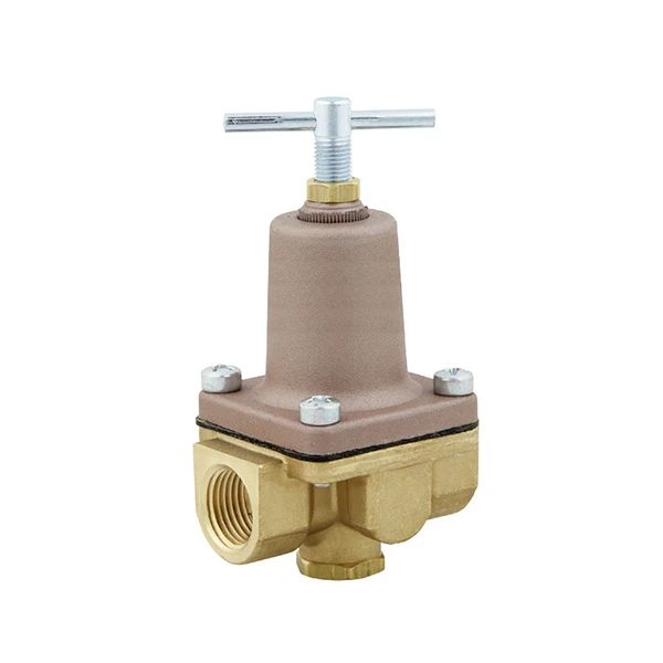 This Lead Free Small Pressure 2-Way Regulator from Watts is generally used in small applications to regulate the pressure in piping systems that use water and No. 2 fuel oil. It is constructed from a lead free brass body and has NPT threaded female inlet and outlets. It also has a 1/4 inch 2-way low pressure gauge port, aluminum spring cage, tee handle, Buna-N stainless steel disc, and a Buna-N reinforced diaphragm. It has a maximum working pressure of 300 PSI. Ideal for beverage dispensers, ice cube machines, drinking fountains, and other small applications used in commercial facilities.